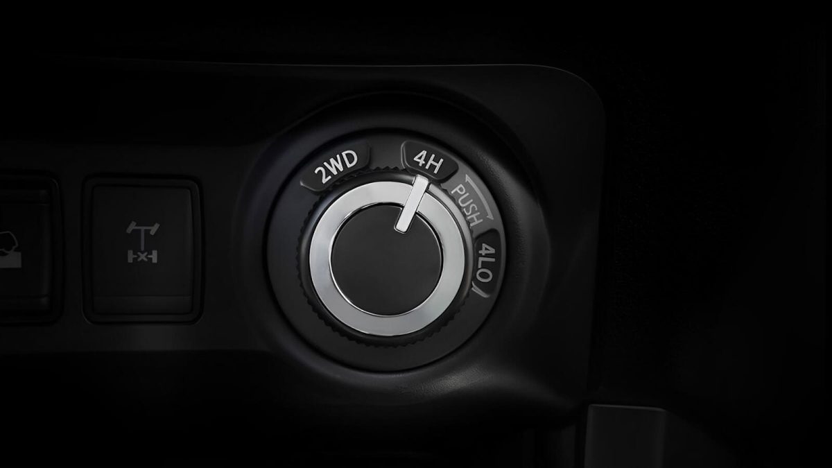 ปรับได้สะดวกแม้ขณะวิ่งที่ความเร็วไม่เกิน 100 กม./ชม. พร้อมระบบปรับโหมดการขับเคลื่อน 4 ล้อ แบบความเร็วต่ำ (4LO) ช่วยเพิ่มกำลังฉุดเมื่อติดหล่ม